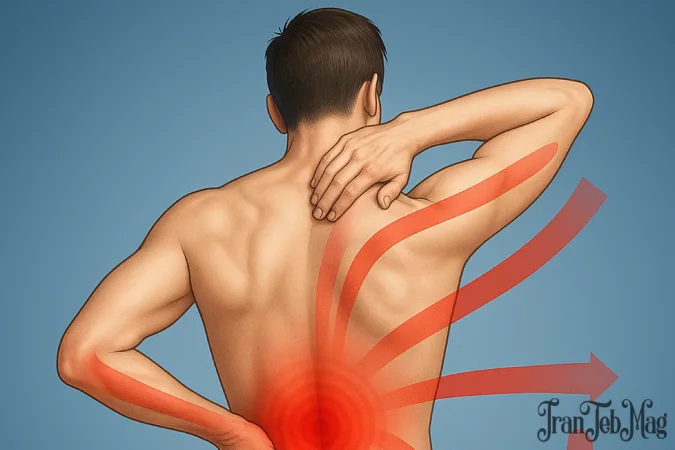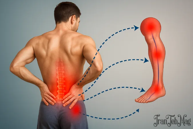 انتشار درد دیسک کمر به نواحی دور از محل آسیب، پدیدهای به نام درد ارجاعی عصبی (Radicular Pain) است. این اتفاق به دلیل آناتومی شبکه عصبی لومبوساکرال رخ میدهد.