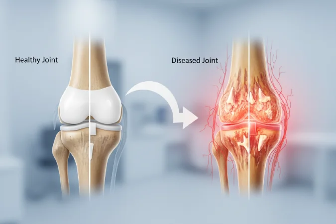 در آرتروز، این غضروف به مرور زمان نازک شده یا کاملاً از بین میرود. نتیجه این فرایند، تماس مستقیم استخوانها، ایجاد اصطکاک، بروز التهاب، شکلگیری خارهای استخوانی (استئوفیت) و در نهایت درد و محدودیت حرکتی است.